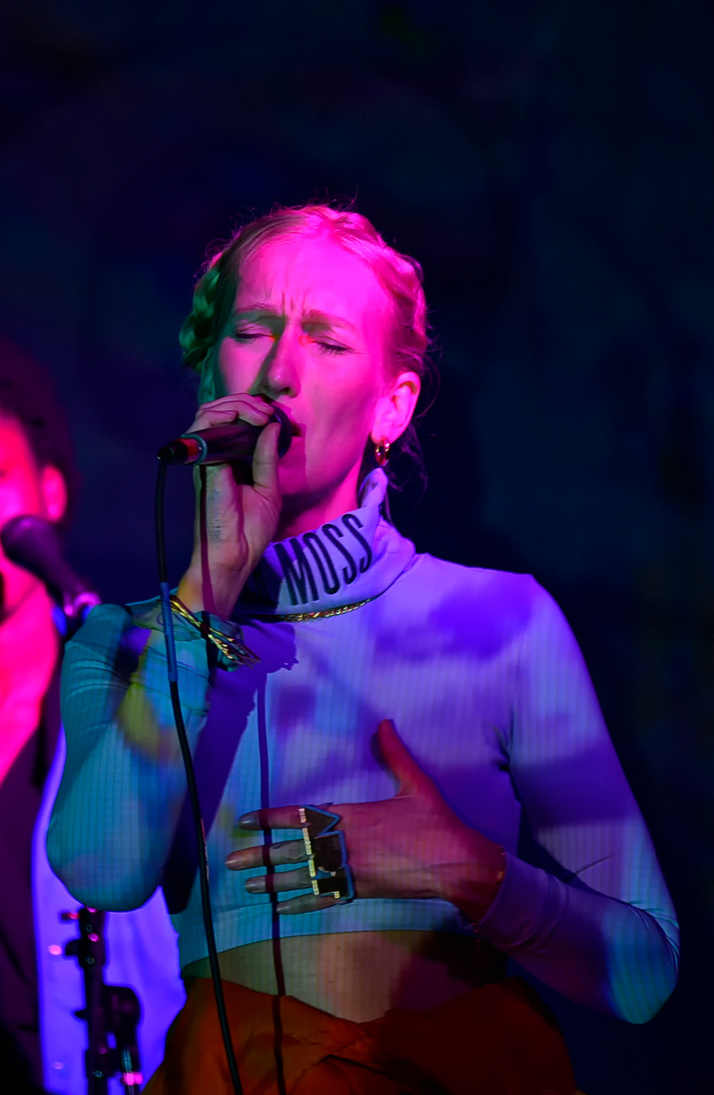 The self-described Scandi witch doesn't cast spells but she does have an enchanting and alluring voice with a commanding vibrato you can hear on the song 'Beaches' from her album Solen. At the show, she put on an emotional and evocative performance throughout the set, which you can clearly see in her eyes above. She's one of those singers that gets intimate with the crowd.