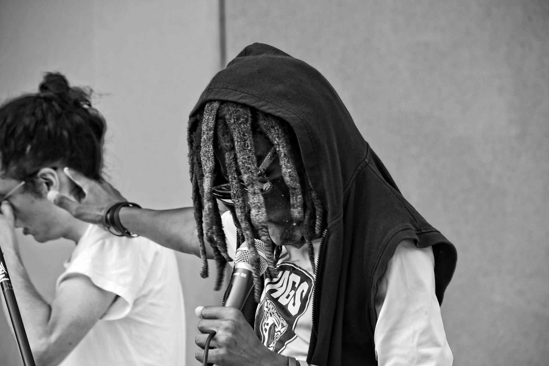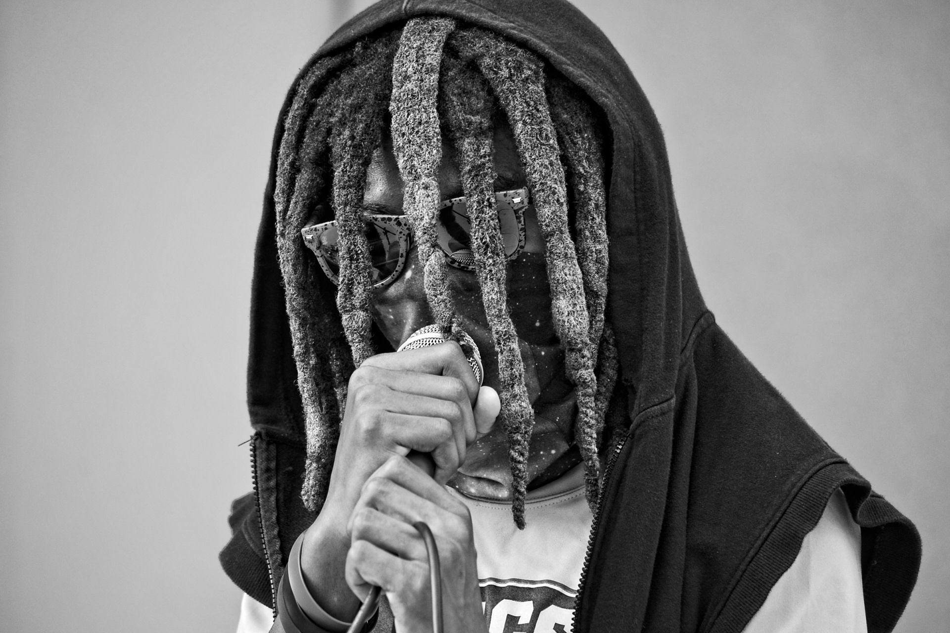 Don't be fooled, this young man was a musician not a rapper. He looks like one in this photograph, but he was goofing off with that microphone, he just made it look like he was actually rapping.